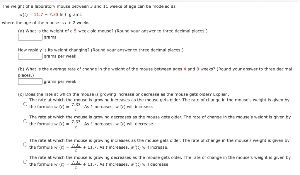 Solved weight of a laboratory mouse between 3 and 11 weeks